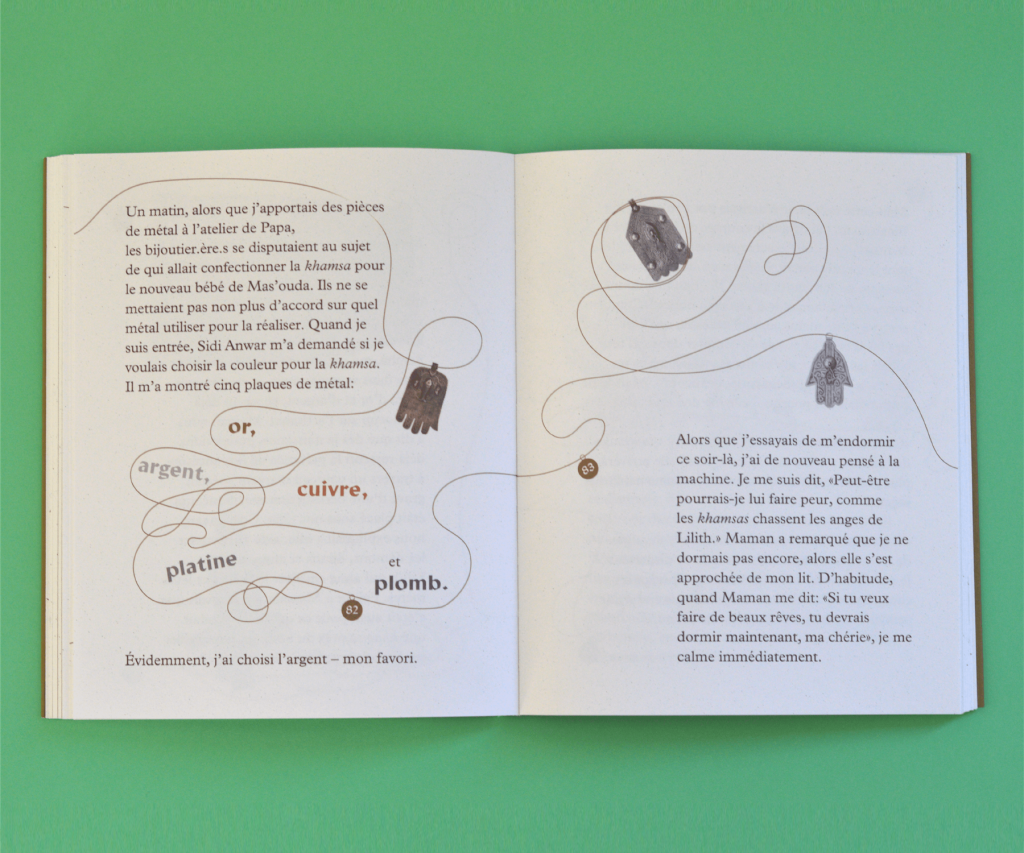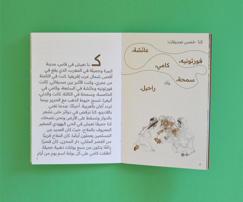 On y rencontre un groupe de cinq amies vivant à Fès au Maroc en 1920. Elles passent leurs journées à jouer entre les ateliers d’artisanat, enfilant des talismans, jouant des tours à un photographe trop curieux et observant leurs parents tisser de délicats fils d’or. La vie dans le mellah est animée et pleine de magie.