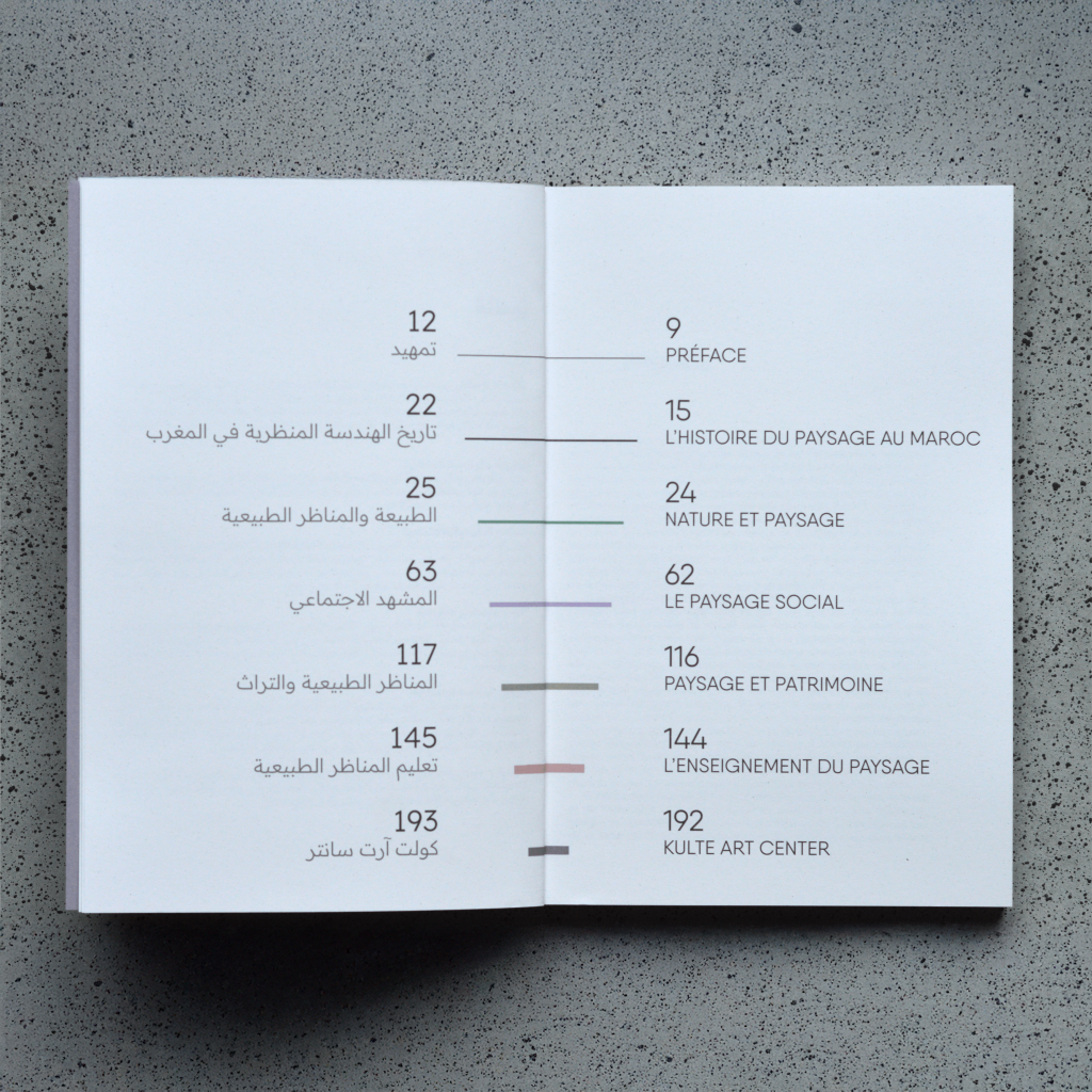 Cet ouvrage offre un regard rétrospectif et expérimenté sur la pratique du paysage au Maroc, au terme de 10 années d’existence de l’agence PAN. Aux côtés de Jean-Christophe Bailly, Mounia Benani, Inés Eléxpru, Loubna Boutaleb et Oum Keltoum Kobite, Frédérique Levesque et Philippe Vidal explorent les enjeux qui naissent de la relation entre le paysage et la nature, le paysage social, le patrimoine, l’enseignement, ainsi que la collaboration d’aménagement paysager entre PAN et Kulte Art Center. De cet ensemble, la reconnaissance du métier d’Architecte-Paysagiste au Maroc apparaît comme une nécessité.